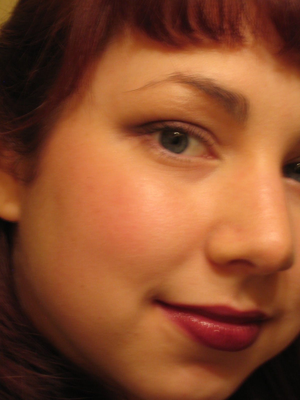 And here it is on my lips, without flash. While it's still firmly a "berry" shade, it definitely leans more purple than red. I feel like this keeps it from being as shocking as brighter reds can be, while still retaining the drama of a bold shade.